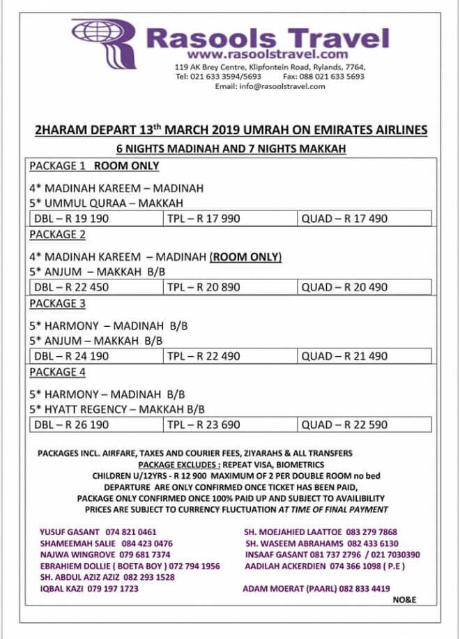 Rasools - 2 Haram, Depart 13 March on Emirates Airlines - Package 2