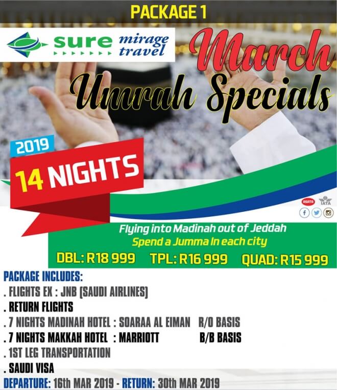 Disclaimer: Kindly check and confirm details with operators before booking. Package Information has been uploaded onto our website as received, and may have changed. Hotel Information has been sourced from websites like Google Maps, Wikimapia and Hotels.com. If any of the information is incorrect, kindly let us know via email: info@hajjumrahinfo.co.za - Shukran