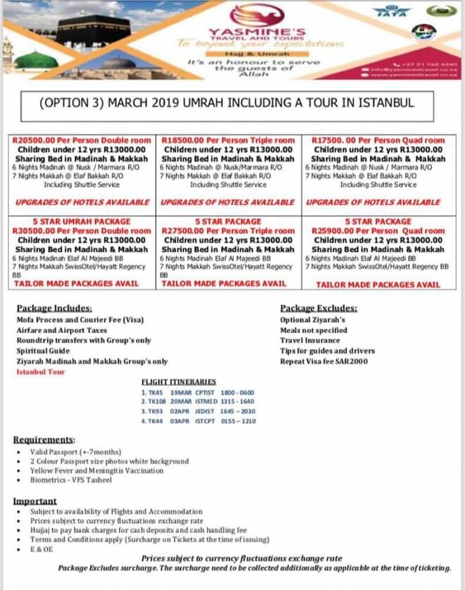 Yasmines Travel - March 2019 Umrah Including a Tour in Istanbul