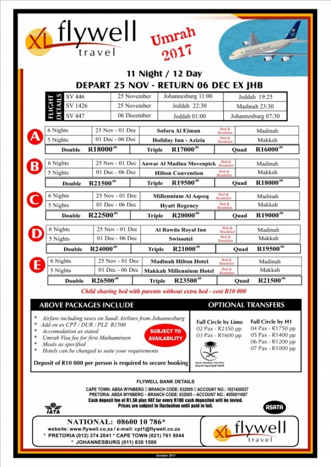 Flywell Travel - Umrah EX JHB -25th November - Package B