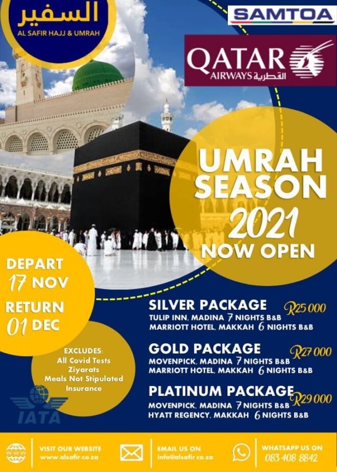 Disclaimer: Kindly check and confirm details with operators before booking. Package Information has been uploaded onto our website as received, and may have changed. Hotel Information has been sourced from websites like Google Maps, Wikimapia and Hotels.com. If any of the information is incorrect, kindly let us know via email: info@hajjumrahinfo.co.za - Shukran