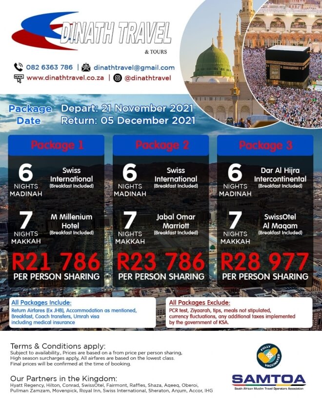 Disclaimer: Kindly check and confirm details with operators before booking. Package Information has been uploaded onto our website as received, and may have changed. Hotel Information has been sourced from websites like Google Maps, Wikimapia and Hotels.com. If any of the information is incorrect, kindly let us know via email: info@hajjumrahinfo.co.za - Shukran