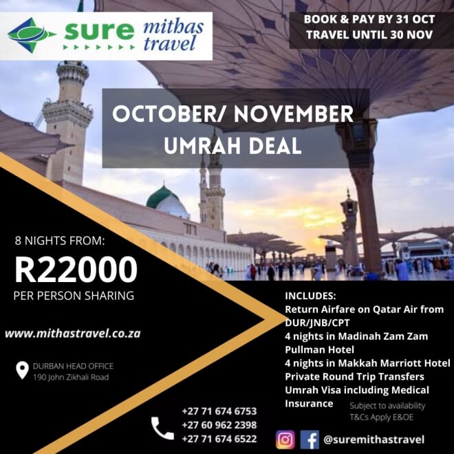 Disclaimer: Kindly check and confirm details with operators before booking. Package Information has been uploaded onto our website as received, and may have changed. Hotel Information has been sourced from websites like Google Maps, Wikimapia and Hotels.com. If any of the information is incorrect, kindly let us know via email: info@hajjumrahinfo.co.za - Shukran