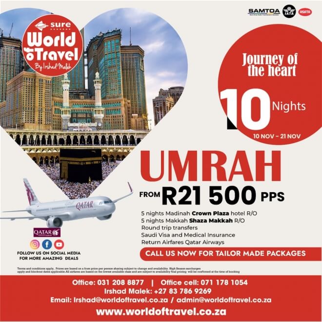 Disclaimer: Kindly check and confirm details with operators before booking. Package Information has been uploaded onto our website as received, and may have changed. Hotel Information has been sourced from websites like Google Maps, Wikimapia and Hotels.com. If any of the information is incorrect, kindly let us know via email: info@hajjumrahinfo.co.za - Shukran