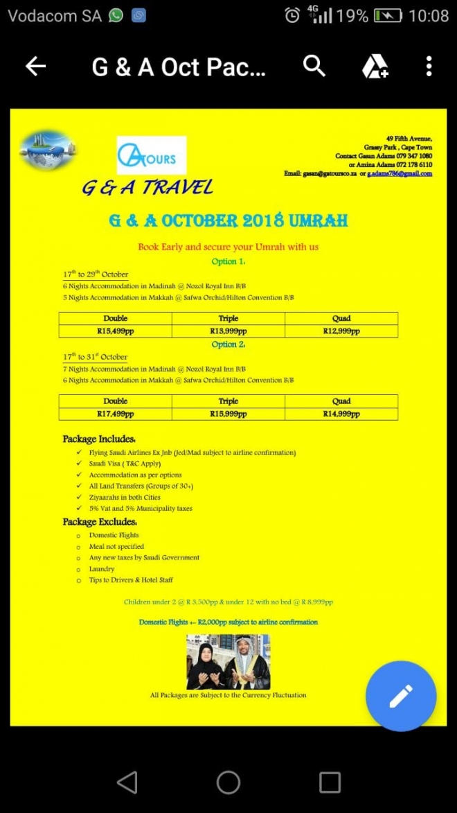 G & A Travel - October 2018 Umrah - Option 2