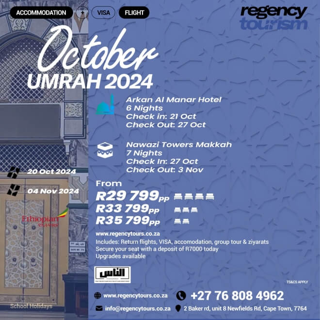 Disclaimer: Kindly check and confirm details with operators before booking. Package Information has been uploaded onto our website as received, and may have changed. Hotel Information has been sourced from websites like Google Maps, Wikimapia and Hotels.com. If any of the information is incorrect, kindly let us know via email: info@hajjumrahinfo.co.za - Shukran