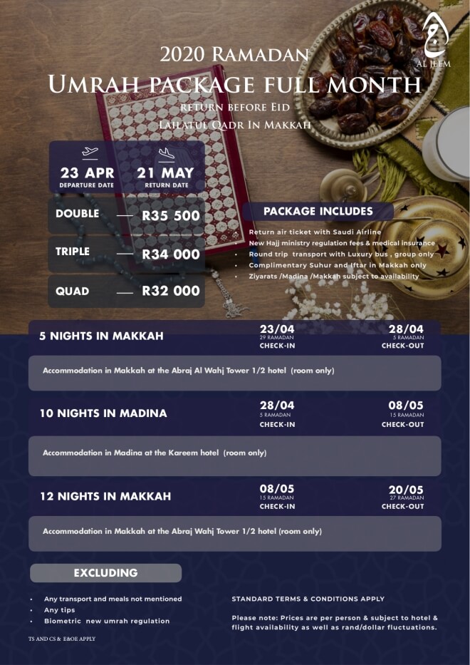 Disclaimer: Kindly check and confirm details with operators before booking. Package Information has been uploaded onto our website as received, and may have changed. Hotel Information has been sourced from websites like Google Maps, Wikimapia and Hotels.com. If any of the information is incorrect, kindly let us know via email: info@hajjumrahinfo.co.za - Shukran