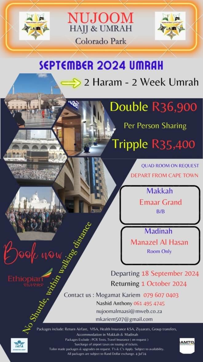 Disclaimer: Kindly check and confirm details with operators before booking. Package Information has been uploaded onto our website as received, and may have changed. Hotel Information has been sourced from websites like Google Maps, Wikimapia and Hotels.com. If any of the information is incorrect, kindly let us know via email: info@hajjumrahinfo.co.za - Shukran