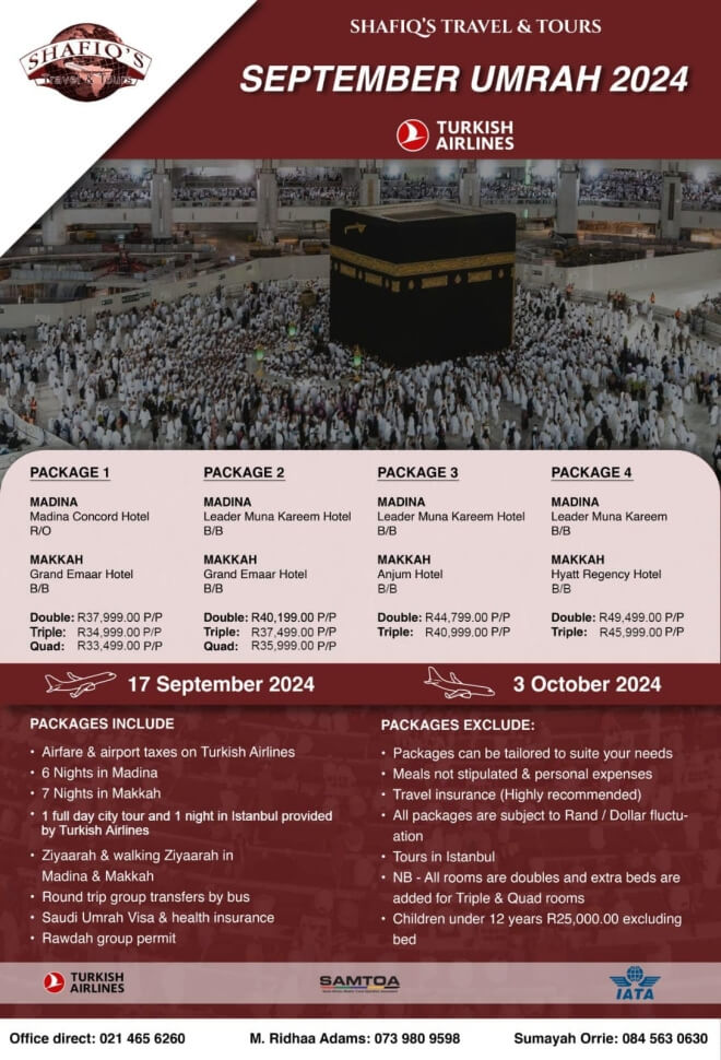 Shafiq's Travel - September 17 Umrah + Instabul - Package 2