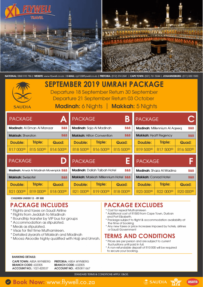 Source: http://flywell.co.za/umrahpackages/september-2019-umrah-package