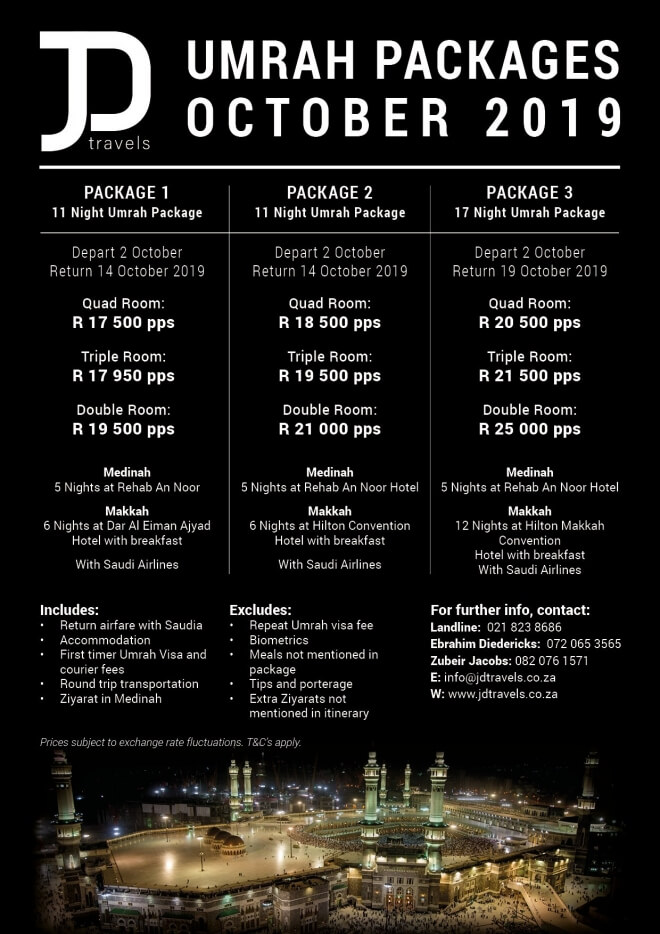 Source: https://jdtravels.co.za/umrah-packages-october-2019/
