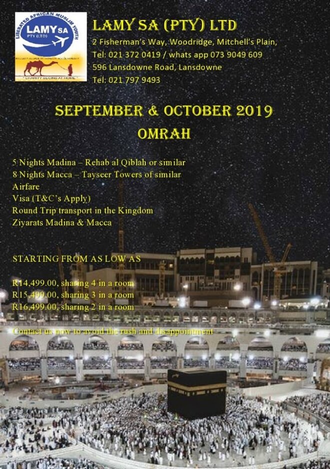 Disclaimer: Kindly check and confirm details with operators before booking. Package Information has been uploaded onto our website as received, and may have changed. Hotel Information has been sourced from websites like Google Maps, Wikimapia and Hotels.com. If any of the information is incorrect, kindly let us know via email: info@hajjumrahinfo.co.za - Shukran