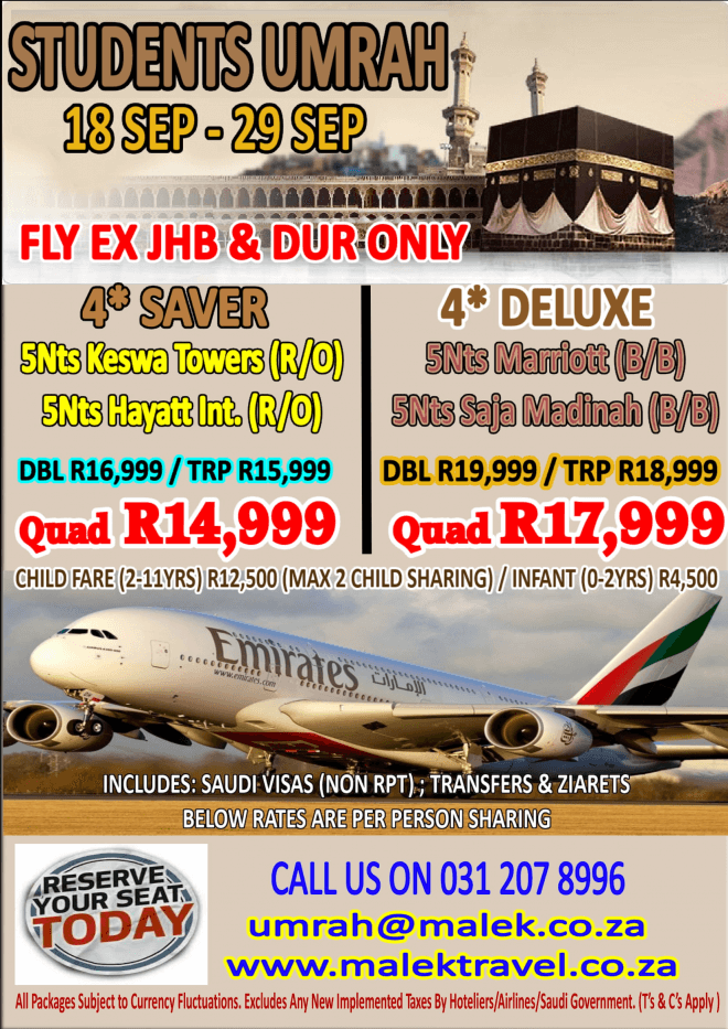 Malek Travel - September 2019 Students Umrah - Emirates Airlines - 4* Deluxe