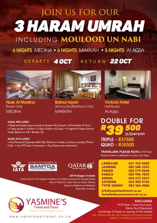 Yasmines Travel - 3 Haram Umrah Including Moulood un Nabi