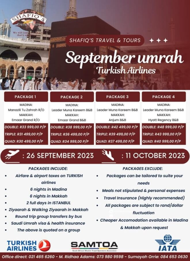 Shafiq's Travel - September Umrah + Stopover in Istanbul - Package 4