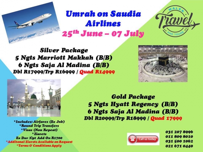 Disclaimer: Kindly check and confirm details with operators before booking. Package Information has been uploaded onto our website as received, and may have changed. Hotel Information has been sourced from websites like Google Maps, Wikimapia and Hotels.com. If any of the information is incorrect, kindly let us know via email: info@hajjumrahinfo.co.za - Shukran