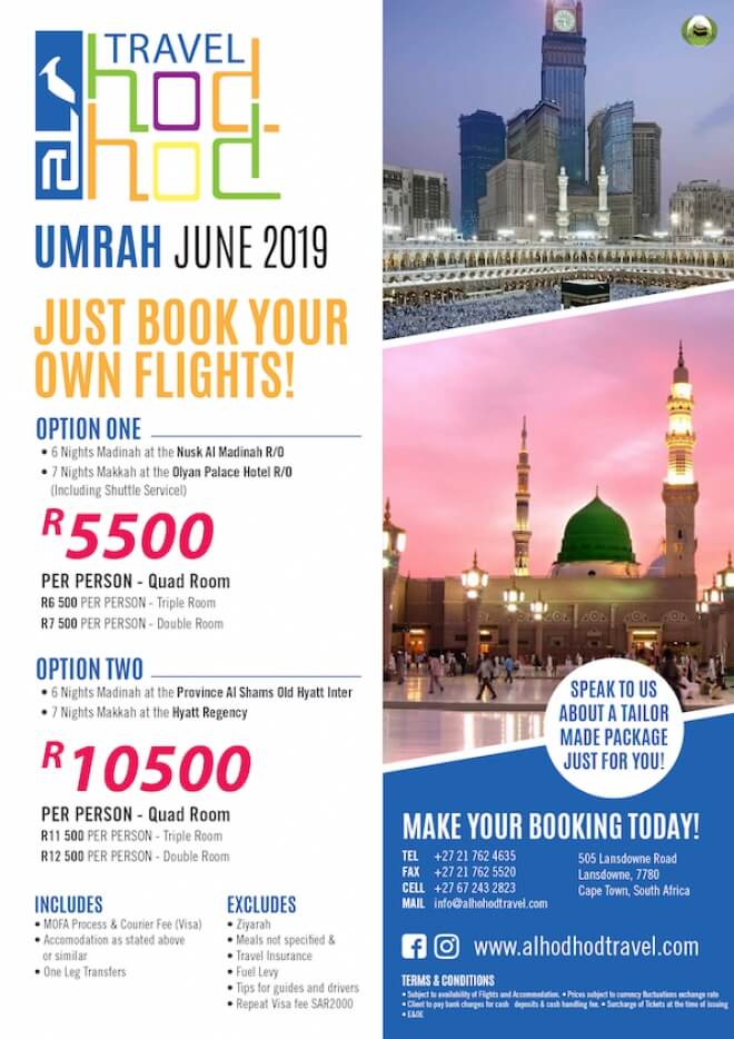 Disclaimer: Kindly check and confirm details with operators before booking. Package Information has been uploaded onto our website as received, and may have changed. Hotel Information has been sourced from websites like Google Maps, Wikimapia and Hotels.com. If any of the information is incorrect, kindly let us know via email: info@hajjumrahinfo.co.za - Shukran
